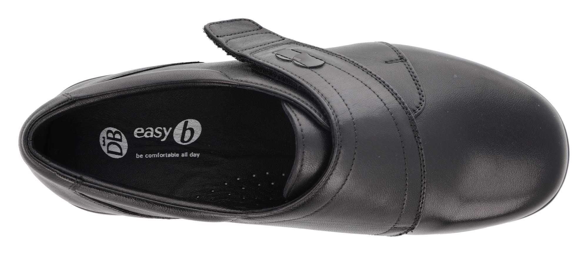 DB's leather Womens Wide Fit Touch Strap Flat Shoes Cher, offer easy access and great adjustability with a customisable strap. The flared heel ensures stability and removable cushioned insoles provide superb comfort - perfect for all day use.