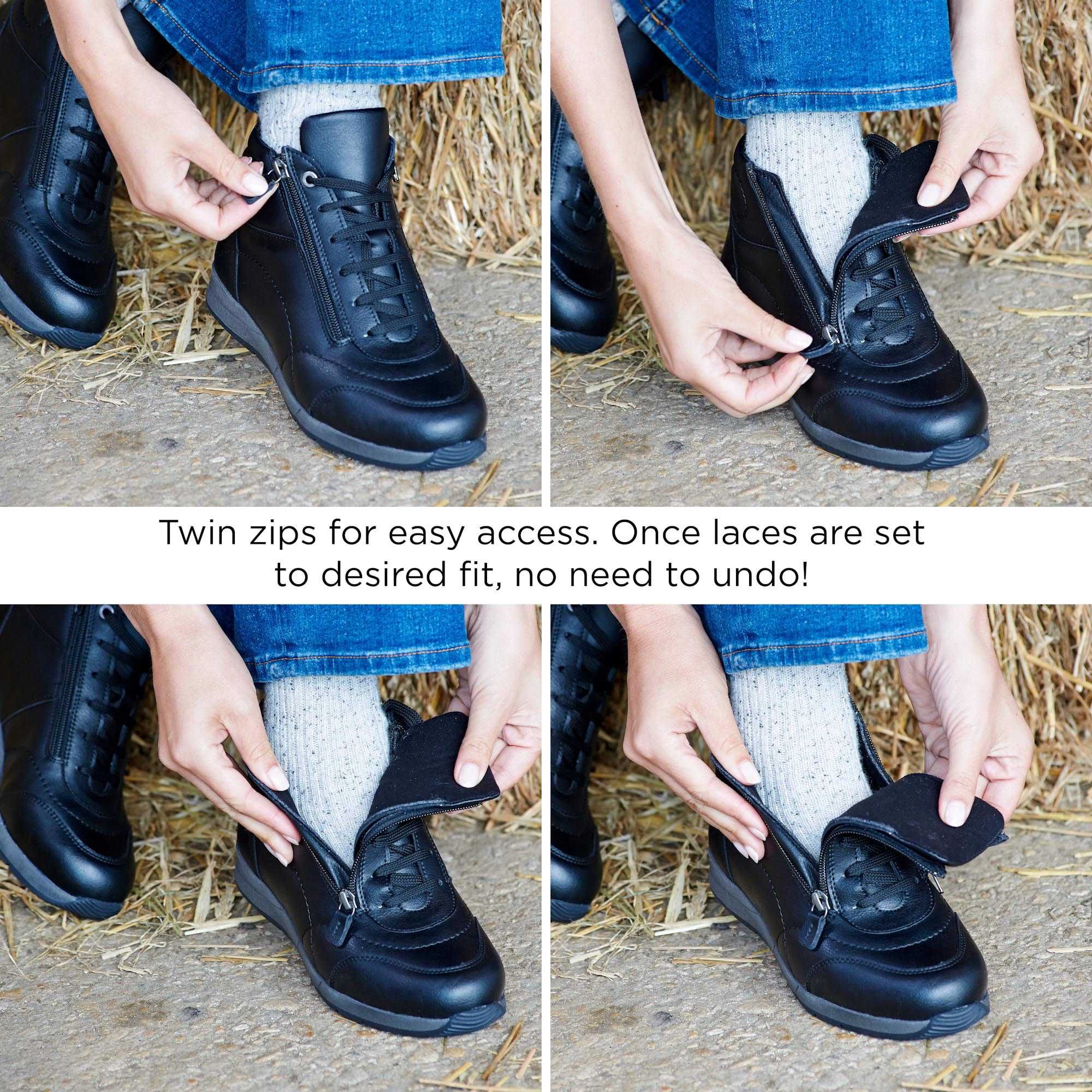 Simply set the laces to your desired fit and use the twin zips for easy foot entry. Healthy Footwear Guide approved.
